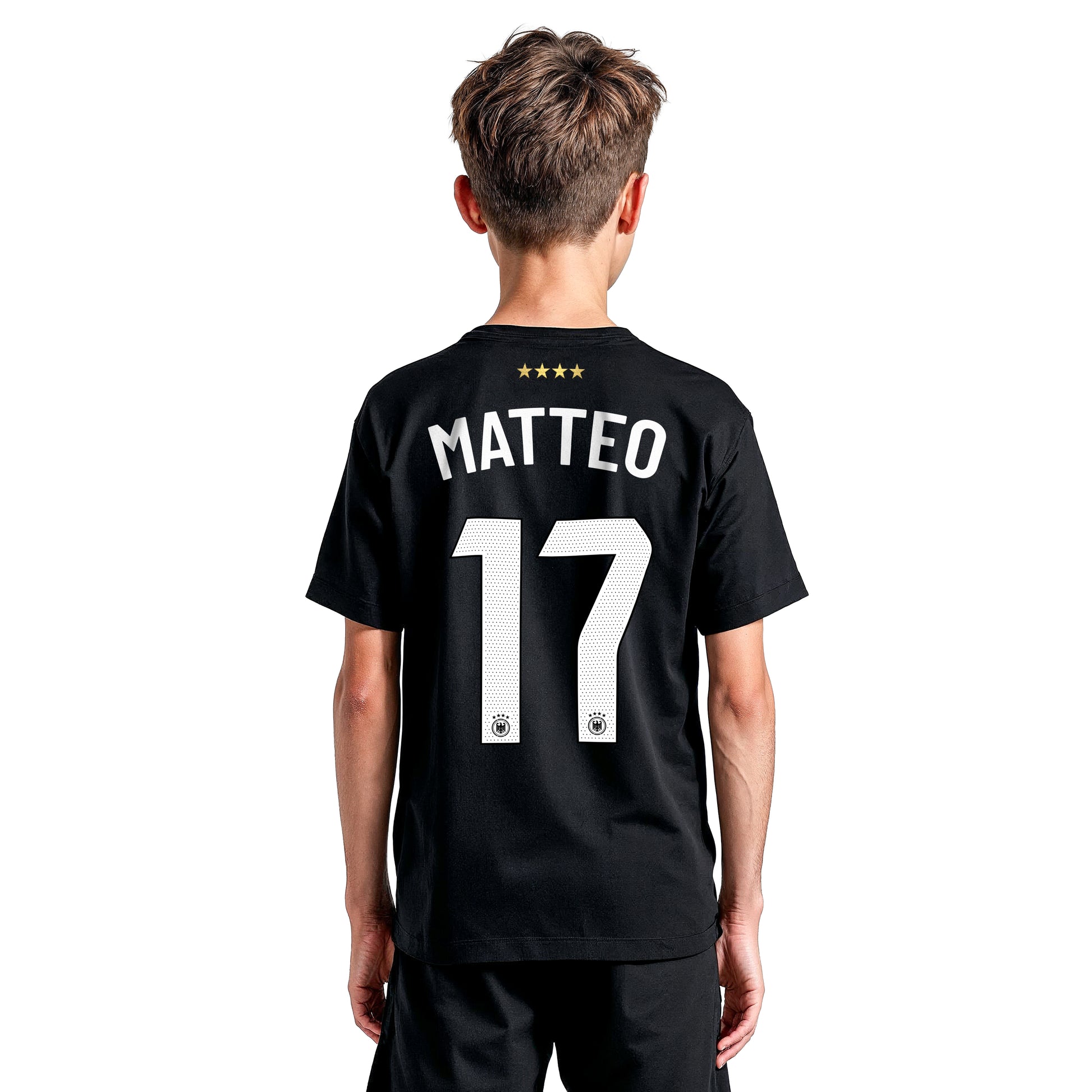 Schwarzes Deutschland-Fußballtrikot für Kinder mit deinem Namen und Nummer – Premium-Qualität